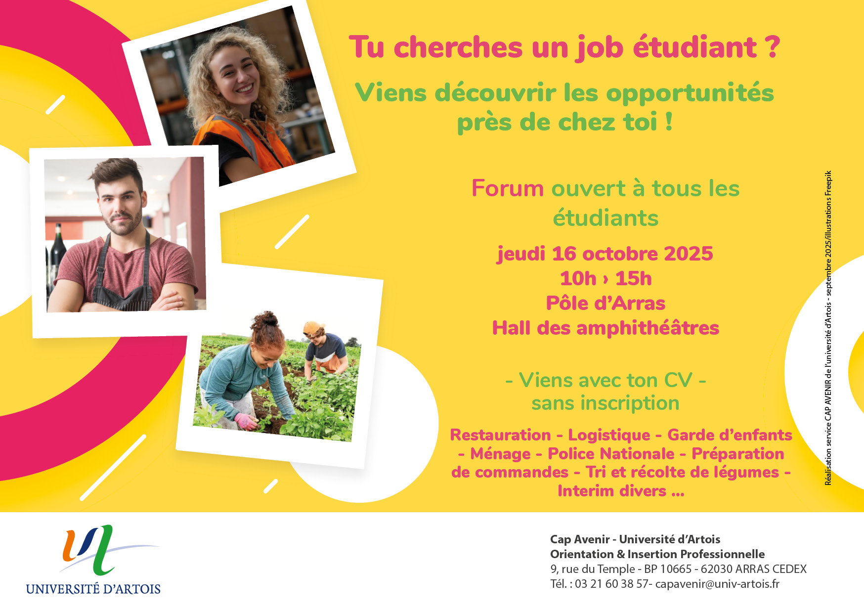 Tu cherches un job étudiant ? Participe au Forum jobs de l'université d'Artois