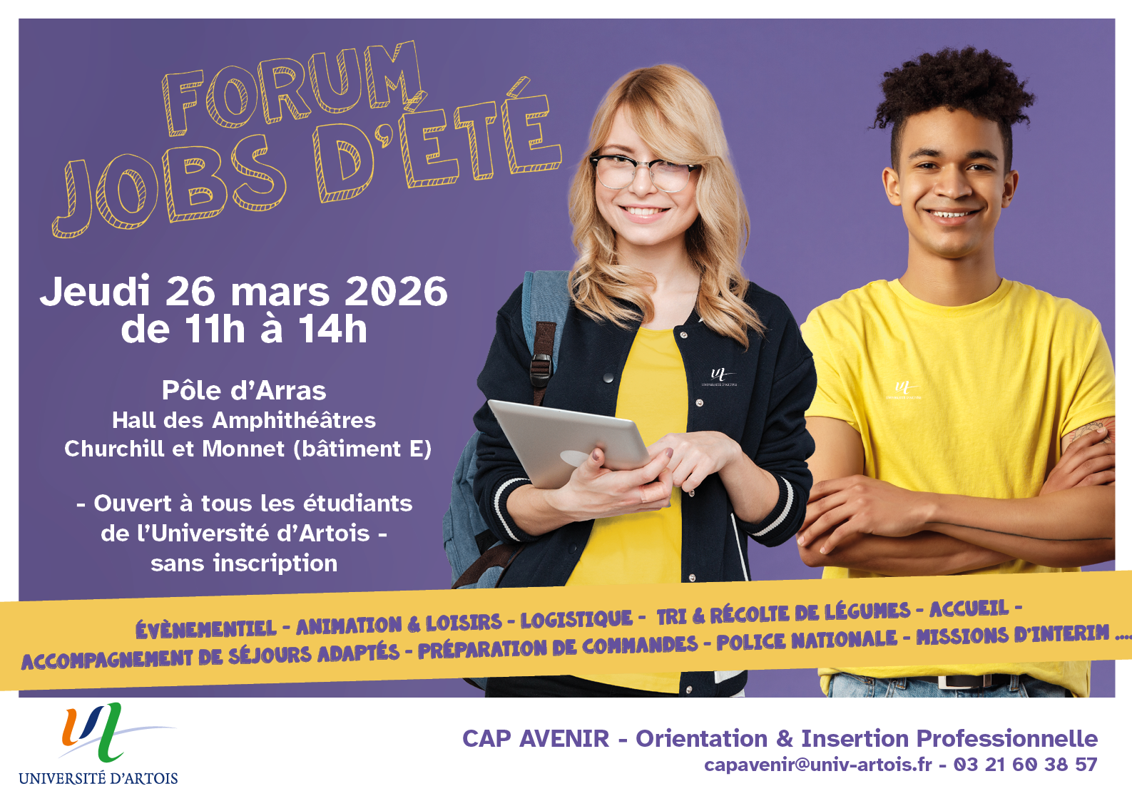Tu cherches un job étudiant pour la saison estivale ? Participe au Forum jobs de l'université d'Artois